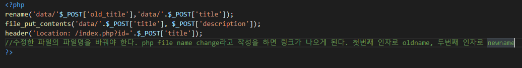 이렇게 작성을 하고 index.php를 복사해서 update.php로 이름을 바꿔줍시다.