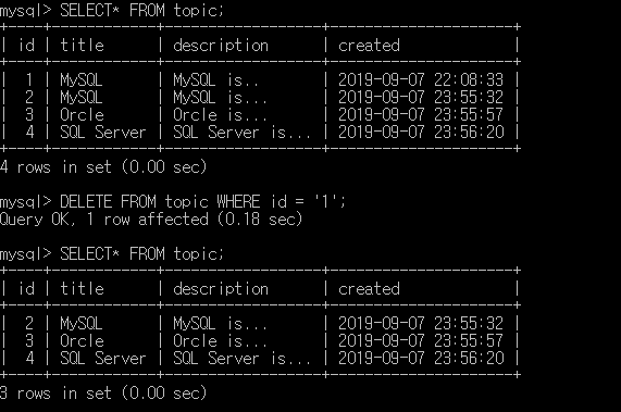 | MySQL의 UPDATE 시작하기 (0) | 2019.07.06 |
