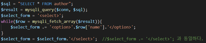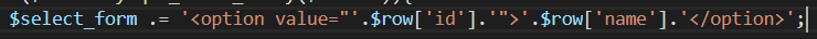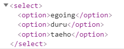 이렇게 작성을 하게 되면 각 row마다 <option>이라는 html 태그가 줄줄이 이어서 나오게 됩니다.