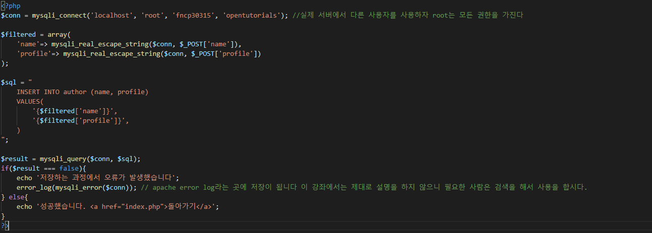 지금은 process_create_author.php가 없기 때문에 지금 Submit을 하면 오류가 납니다.