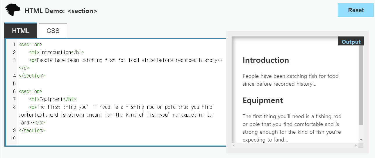 section 태그는 문서의 일반적인 영역을 설정을 할 때 사용을 합니다.