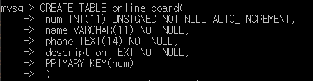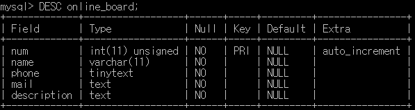 따라서 테이블도 새로 만들어줘야 한다. 온라인 문의에서 필요하다고 생각이 드는 것은