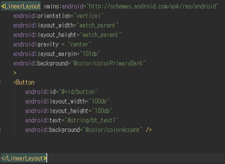 이런식으로 LinearLayout에 margin값을 101dp를 줘보겠습니다.