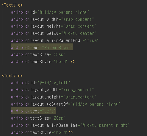 toRightOf = "@+id" 설정한 아이디 오른쪽으로 붙어라!