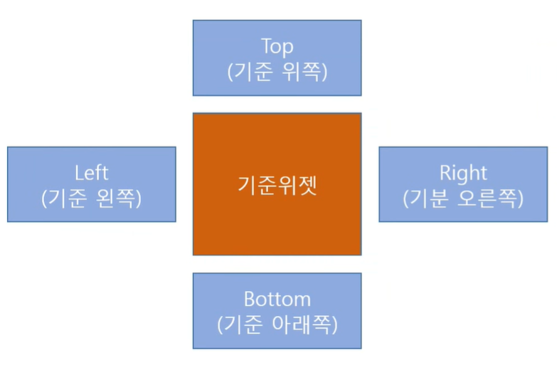 이 기준으로 위쪽, 아래쪽 등에 위젯을 붙이는 것입니다.