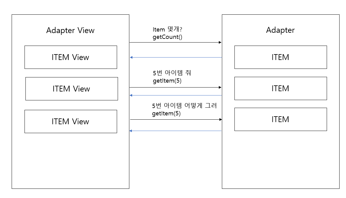 간단히 말하면 데이터와 리스트 뷰 사이의 통신을 위한 다리역할이라고 보면 됩니다.