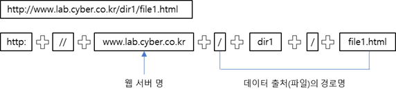 아래의 URL은 www.lab.cyber.co.kr이라는 웹 서버에 있는 /dir1/file1.html이라는 경로의 파일에
