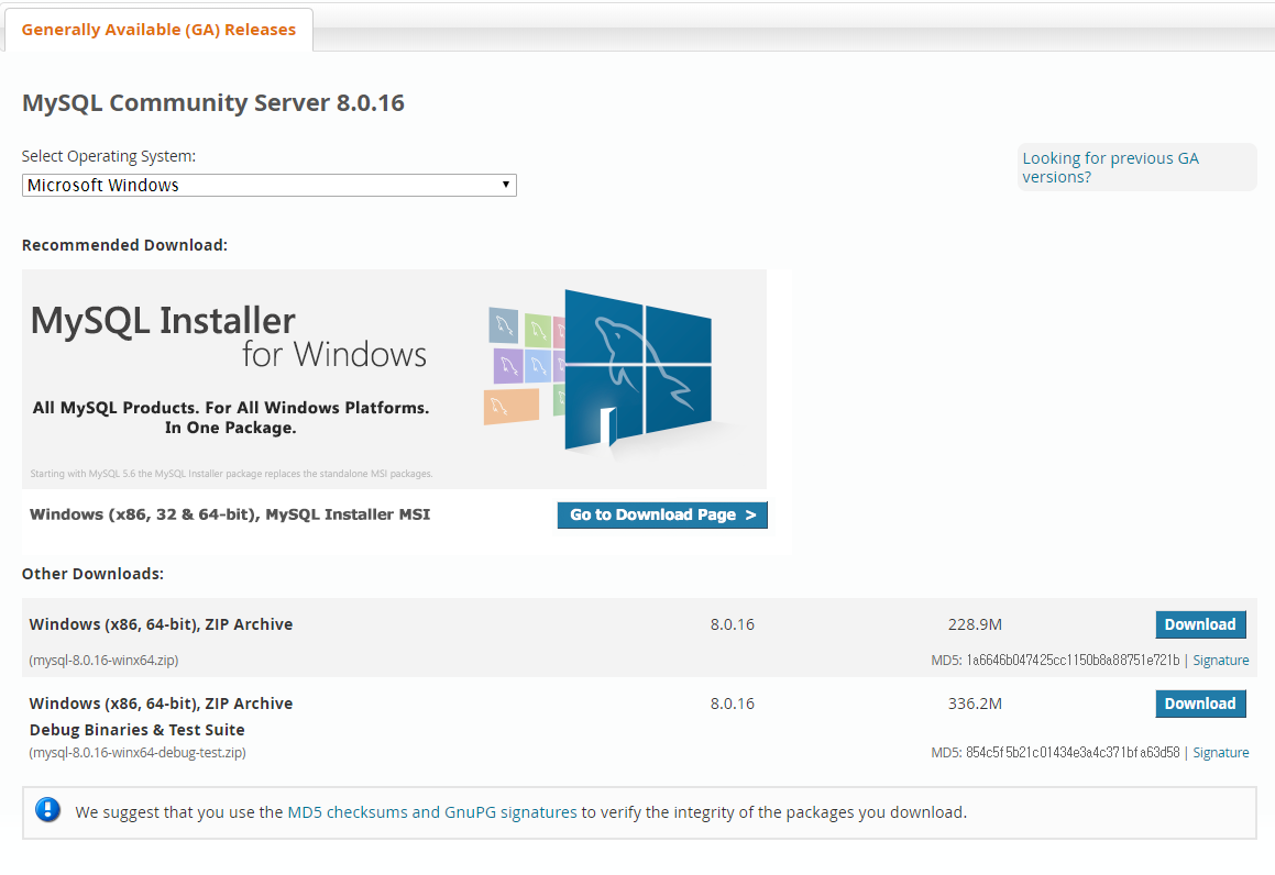 Download Installers라는 글의 링크를 클릭해서 들어간 후