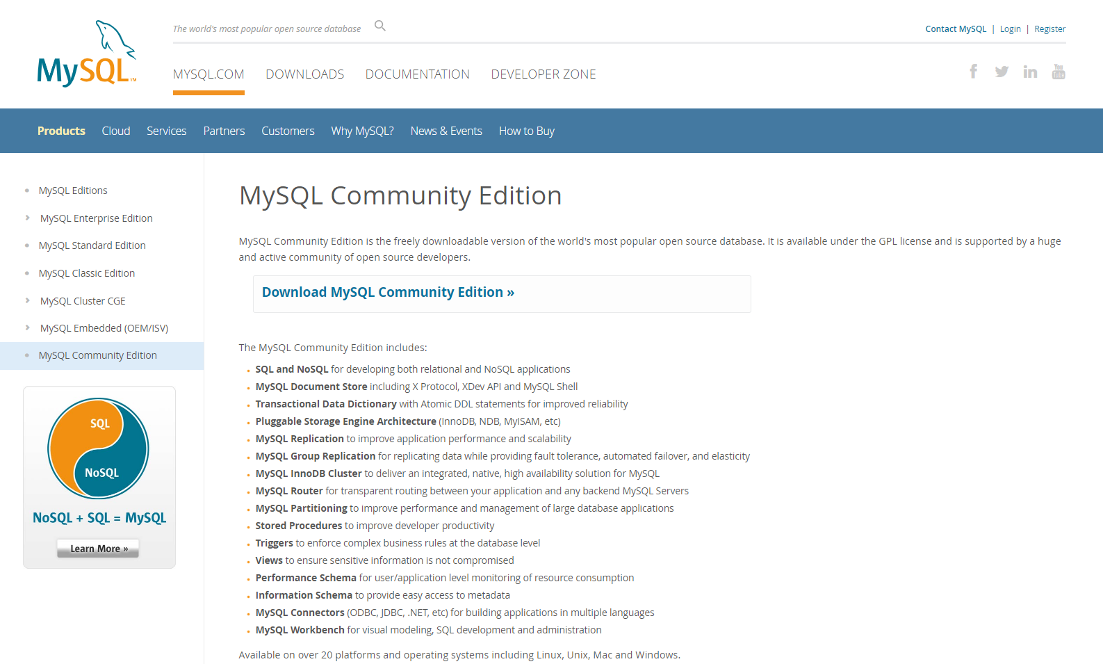 Chrome을 통해 구글에서 MySQL Community Edition Download 검색하기