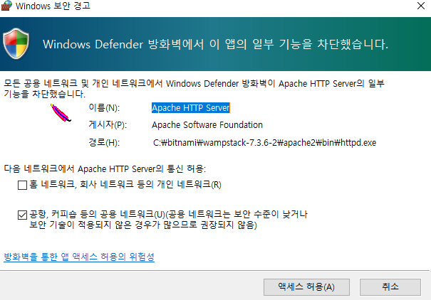예시) C:\Bitnami\wampstack-7.3.6-2