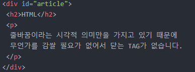 그런데 2개의 독립적인 태그를 의미있는 태그인 h1과 같은 걸로 묶을 수는 없기 때문에