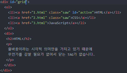 제일 부모인 div 태그를 grid로 지정하기 위해서 ID값을 줍시다.