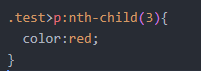 특정 태그에 상관없이 test 클래스를 부모로 두고 있는 자식 엘리먼트 중 3번째를 뜻합니다.