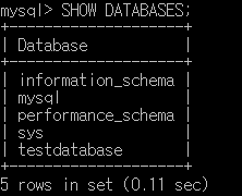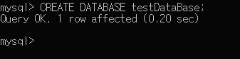 이제 내가 작성하는 명령어가 testdatabase라는 곳에 적용이 된다!