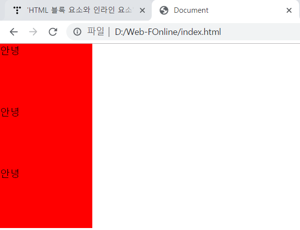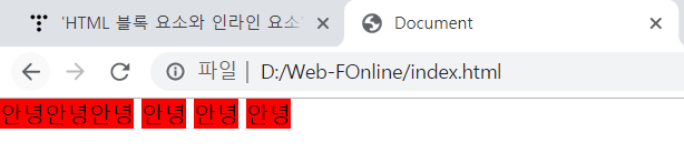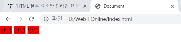 안녕 글자 사이에 여백도 인라인의 특징이라고 볼 수 있는데