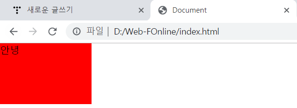 사용을 하는 것을 의미합니다. 물론 뒤의 색깔을 지정해놓고 안녕이란 텍스트를 작성을 하고 css파일에 height:0;