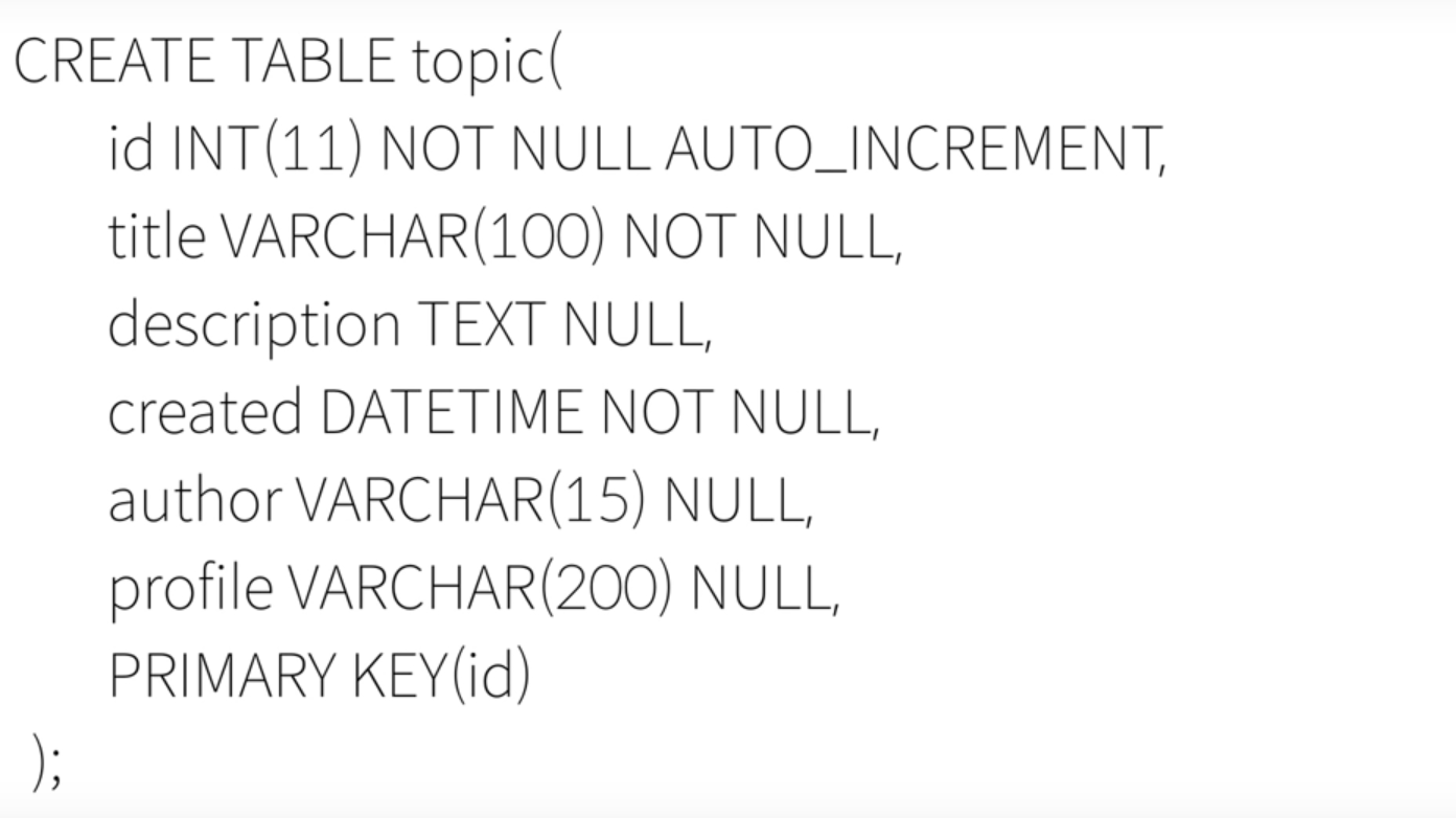 -> MySQL에게 topic의 메인 키워드는 id라는 것을 알려주는 것이다