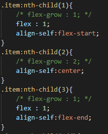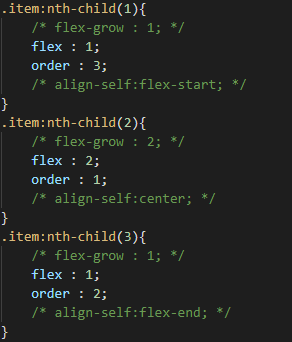 여기까지 살펴본 것은 flex를 container에 적용시킨 것을 알아본 것이다.