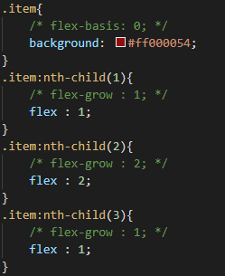 이것을 하나로 할 수 있는 것이 flex만 작성을 하는 것이다. 이것만 작성을 해주면 basis의 값도 0으로 바뀌고