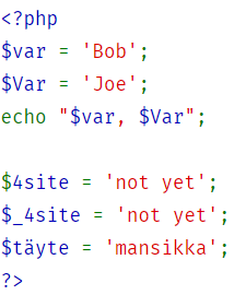 php에서는 변수를 선언을 할 때 반드시 앞에 $를 작성을 해주어야 합니다.
