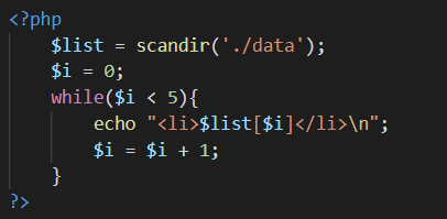 그런데 목록이 추가가 되어도 5개까지만 출력이 되고 있습니다. $i < 5를 list의 원소의 숫자로 바꿔주면 됩니다.